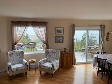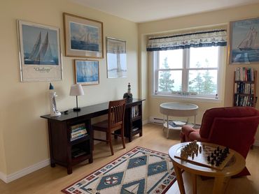 Overlooking Swallowtail Lighthouse Pettes Cove the sitting room adds extra space for quiet reading or playing.