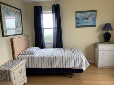Over looking Pettes cove and the Swallowtail Lighthouse, this room offers two twin beds with access to 2nd level bathroom.